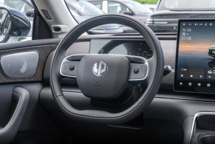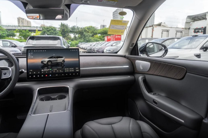 内饰的设计简约但不简单,中控台用了软质材料包裹,摸起来很有质感,不会有廉价的硬塑料感。新款在中控台处加了缝线设计,比老款多了点精致感,细节处理很到位。车上搭载的 10.25 英寸仪表盘和 17.3 英寸 2K 分辨率中控屏,屏幕显示极其细腻,色彩还原度高,就像把高清平板搬到了车上。