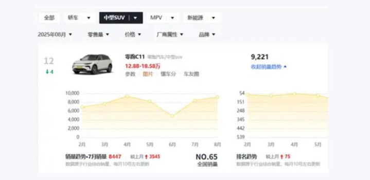 销量方面,我当初之所以选择了零跑C11这款车型,就是因为零跑汽车在众多新势力品牌中有着不错的销量和关注度。例如,2025年零跑品牌销量一直攀升,上半年就交付了22万多台,连续多月位居新势力头部梯队,而且7、8月这两个销量均过5万台。另外,零跑汽车还在积极拓展海外市场,不少车型开始销往欧洲等市场,这种稳扎稳打、国内外双开花的节奏,给人的感觉就是:这个品牌,靠谱。